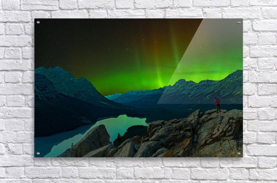 Aurora s Dance at Peyto Lake  HD Metal print with Floating Frame on Back