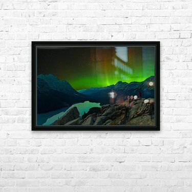Get this artwork "Aurora s Dance at Peyto Lake" in a framed print.